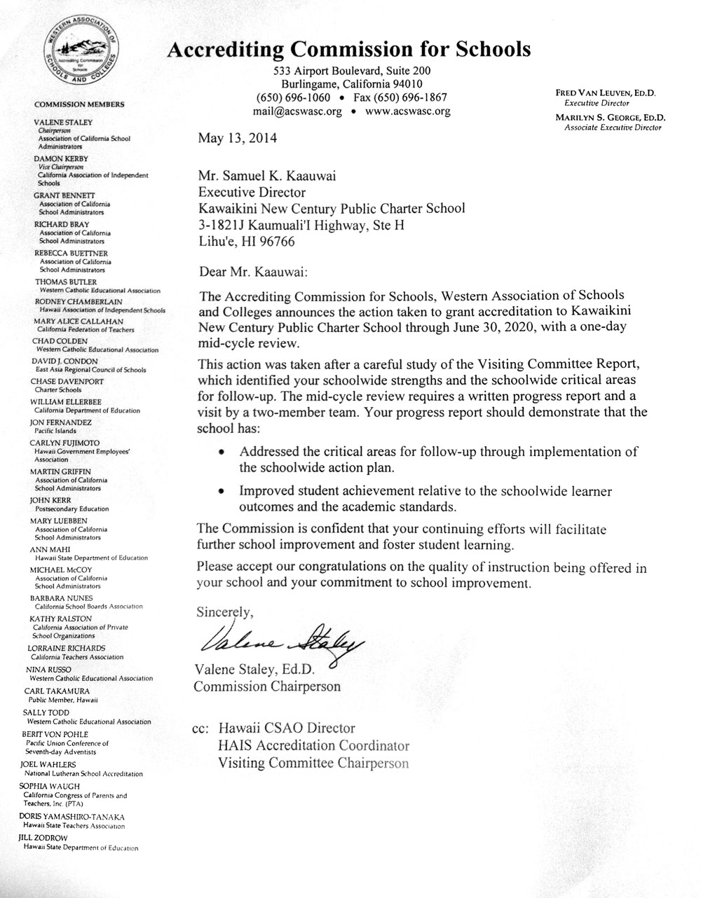 The Accrediting Commission for Schools, Western Association of Schools and Colleges (WASC) has awarded the re-accreditation status of Kawaikini through June 2027! Our mid cycle visit will be conducted in school year 2023-2024.